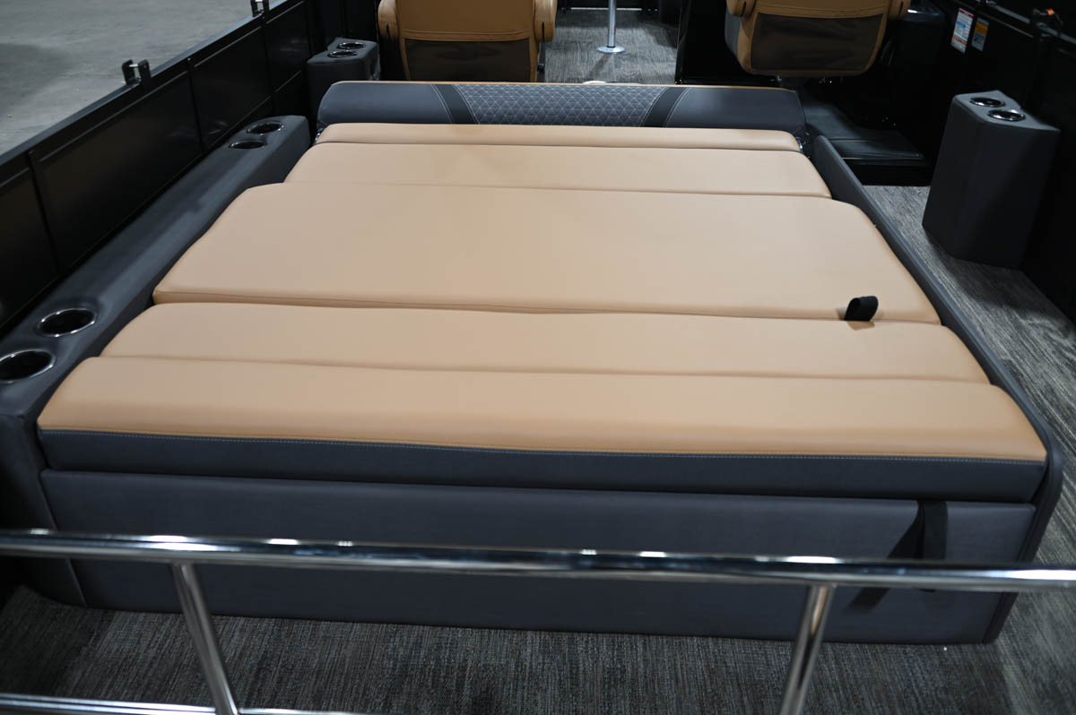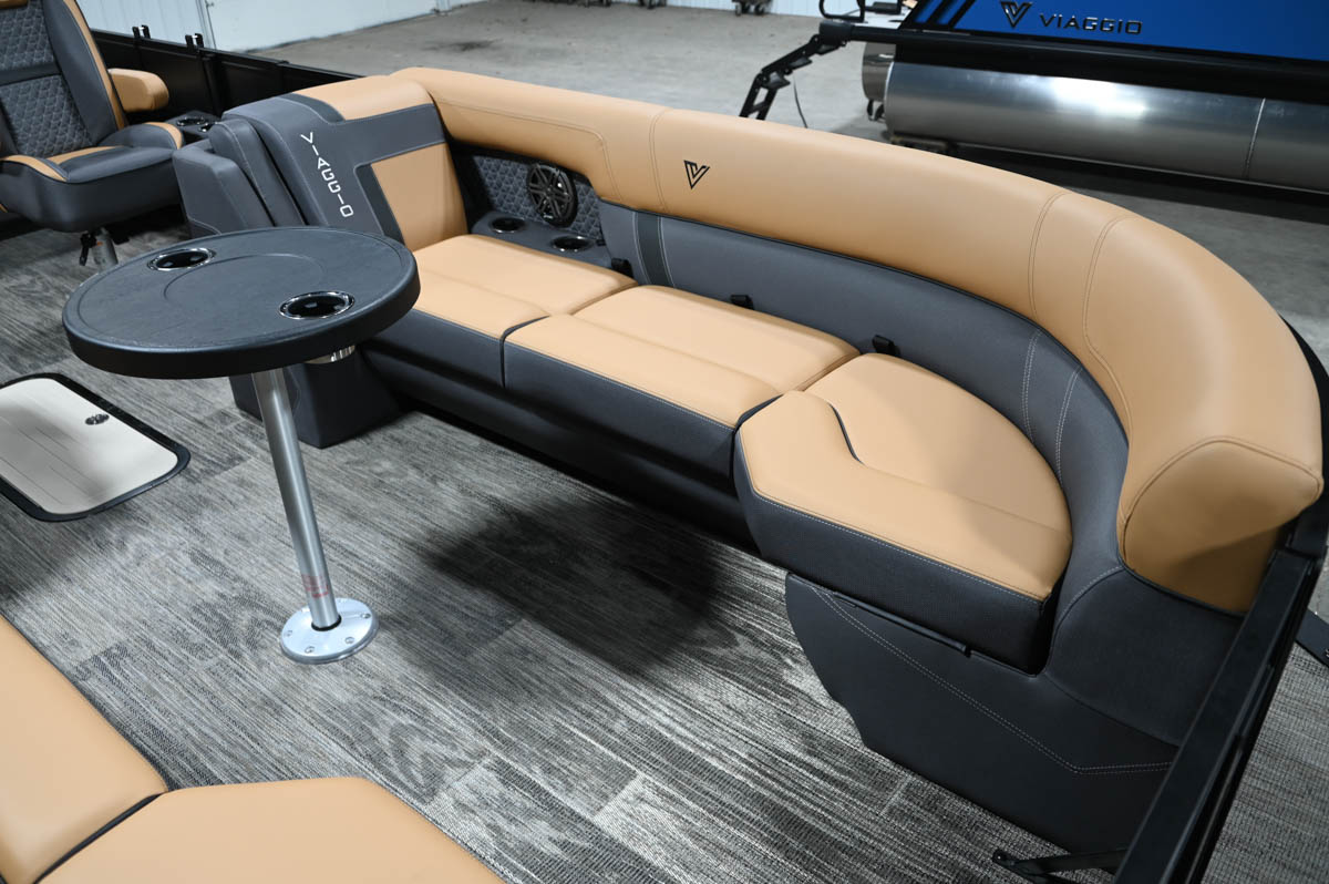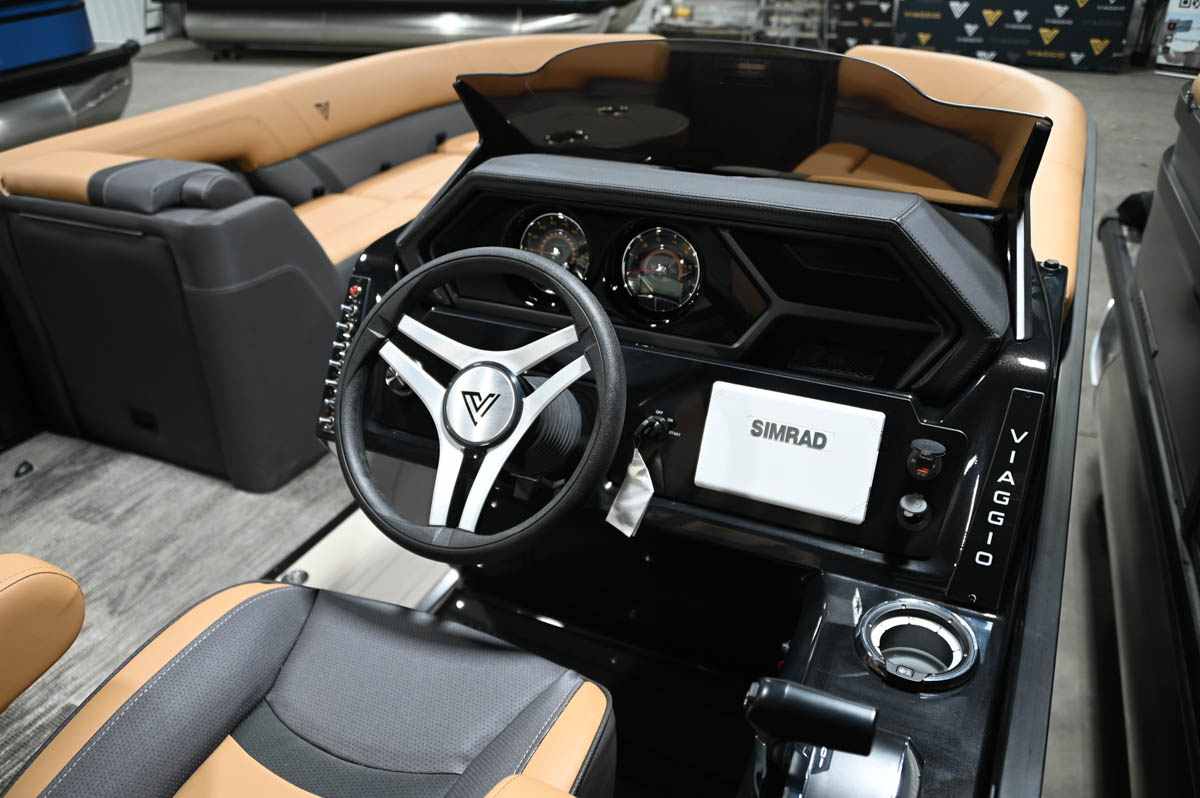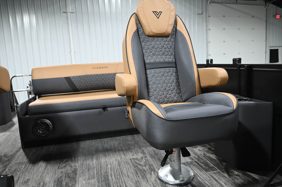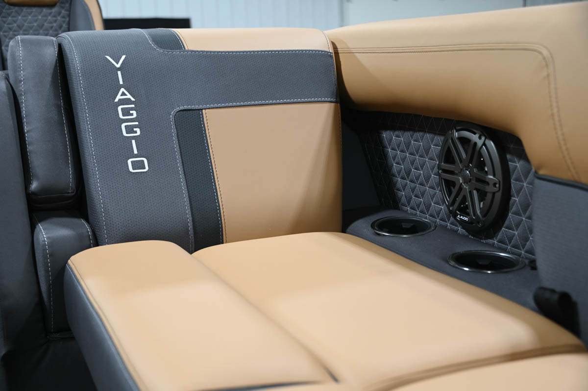 The ALL-NEW Lago Z-SCC is the perfect boat for relaxing out on the water. With its characteristic “swingback” rear lounger, you can position the rear seat to face forward like a bench seat or face backwards making the seat into a sun deck or lounger. This version also features a co-captain’s chair, adding to the versatility of this incredible layout.